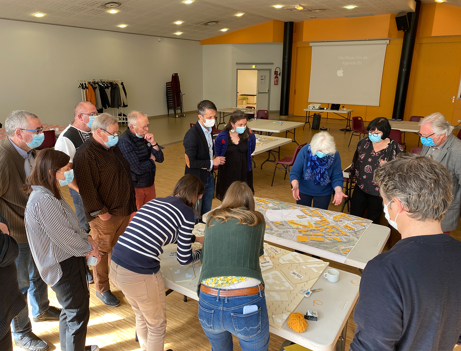 Les trois îlots ainsi créés s'articulent autour d'un espace public central partagé, piéton, en plein cœur de ville, il permet des liaisons douces facilitées entre la place des Fusillés, la nouvelle école et la médiathèque.